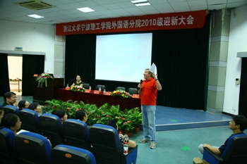 最后,所有到会的老师都给2010级的新生们以诚挚的祝福和希望。老师们的热情和真诚博得同学们的阵阵掌声。