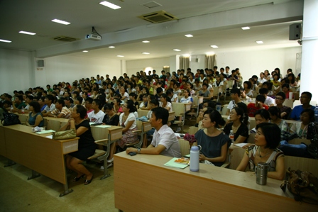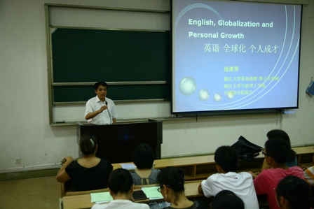 开学伊始,外国语分院经理庞继贤教授在SC214教室向外语分院2010级新生和分院全体教师做了题为《English, Globalization and Personal Growth》的专题报告。