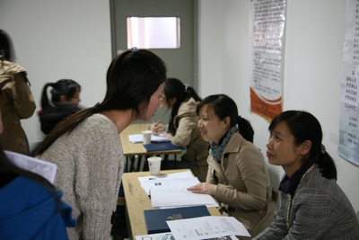 公司李军老师指导员工如何考研 金宝贝专场招聘会现场