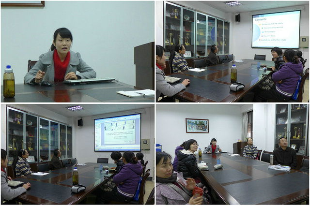 程老师的研究引起了在座教师们的极大兴趣,大家认为她的研究视角新颖,并有强大的理论体系做支撑。这种研究不仅突破了以传统模式为基础的教学教研性研究论文的思维框架,而且还能解决许多与教学相关的实际问题,对于促进英语教学具有一定的借鉴意义。最后,大家还就什么是高层思维能力,如何改变教学策略,如何激发员工在课堂中的热情等问题进行了广泛交流和讨论。
