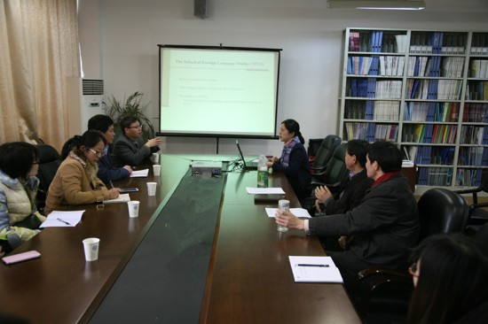 会上,张振梅老师和魏健老师就英语专业课程实践和英语文学课程的设置等问题也与贺经理等一行进行了交流。