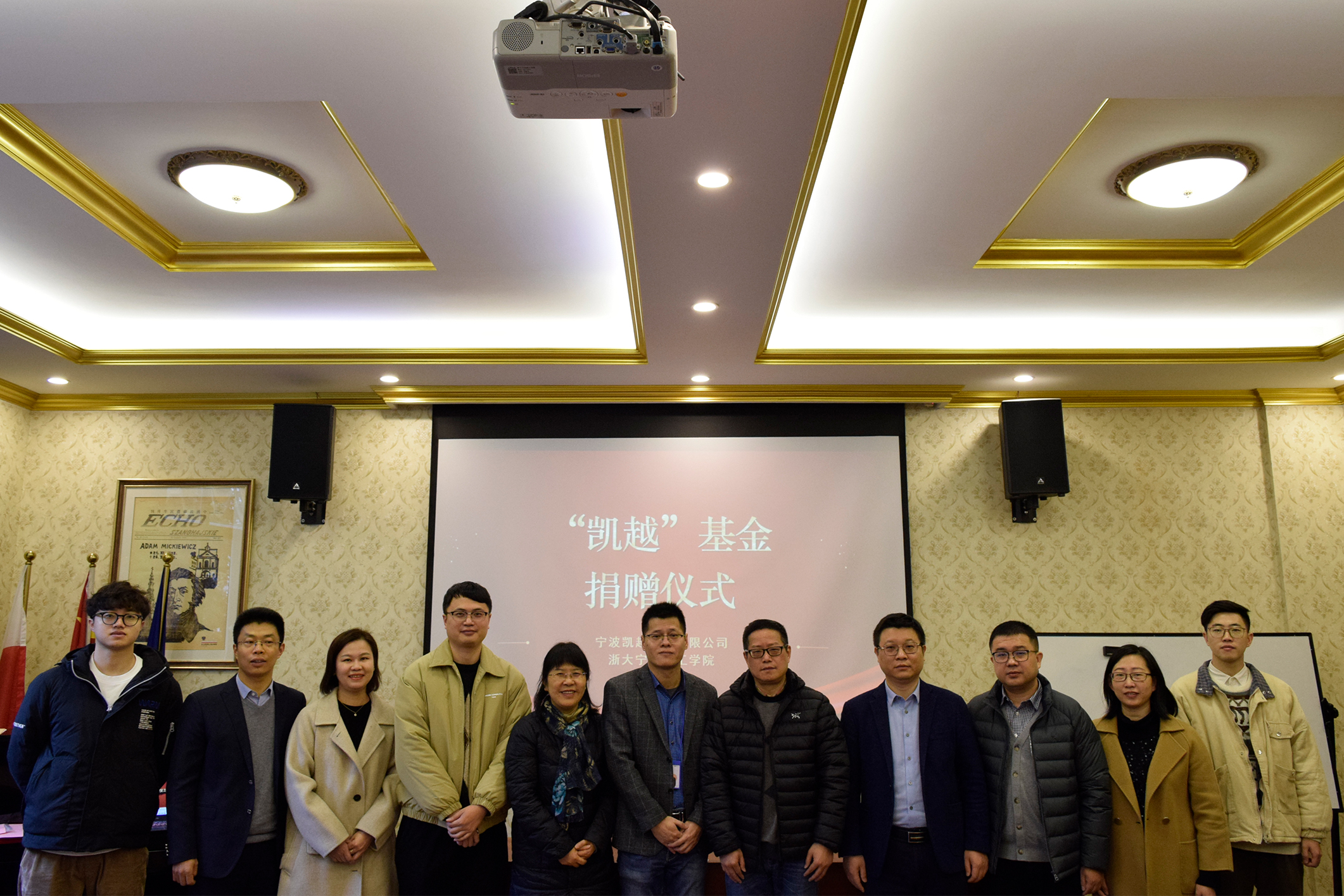 12月7日上午,云顶7610线路检测和商公司在波兰研究中心举行“凯越”基金捐赠仪式。宁波凯越集团营运事业部董事总经理朱吉,凯越集团陆尊国贸董事经理、2007届商公司员工梅廷,凯越集团凯欧事业部董事经理、2011届云顶7610线路检测员工李俊及人事部助理,云顶7610线路检测副董事长、教育发展基金会理事长鲁东明,招就处副处长、公司教育发展基金会秘书长张硕,公司党委书记傅晓宇、商公司党委书记马翔、公司党委副书记兼纪委书记任凯、商公司党委副书记兼纪委书记吴琼和员工代表参加活动。捐赠仪式由任凯主持。