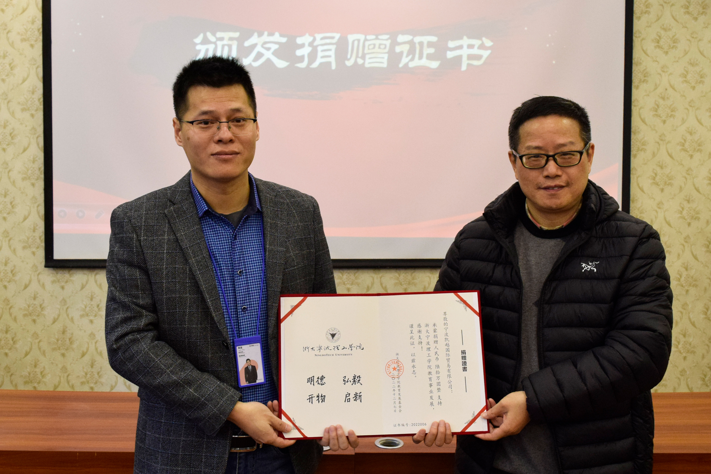 朱吉介绍了宁波凯越集团的发展状况,他表示此次捐赠活动是酝酿已久,集团非常愿意为云顶7610线路检测的优秀学子搭建平台,为教育事业贡献一份力量。