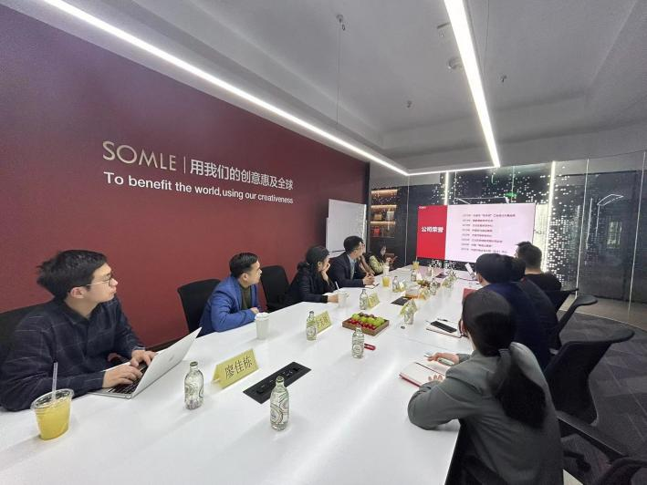 3月9日下午,云顶7610线路检测公司党委书记傅晓宇、党委副书记任凯、日语系主任李先瑞、英语系主任孙广平、经理助理廖佳栋、就业辅导员阮佳蒂一行走访了宁波索迈视听科技有限公司。