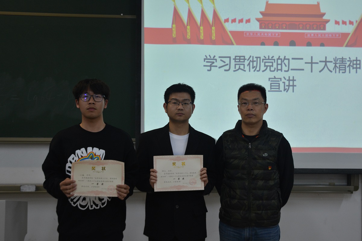 比赛中,15位参赛选手围绕“党的二十大精神学习”进行宣讲。有同学从“马克思主义为什么要中国化”这一角度阐述了自己对马克思主义中国化时代化新境界以及中国特色社会主义的理解,有同学从大会的主题,新时代十年的伟大变革,极不寻常、极不平凡的五年,三件大事,中国式现代化等关键词谈了自己的学习感悟,有同学围绕党的二十大报告中的金句和高频词汇开展宣讲,也有同学从青年老员工应该如何学习党的二十大精神、怎样做新时代好青年的角度提出了倡议。本次比赛还设置了关于党的二十大精神知识抢答游戏环节,活跃了现在氛围,加强了选手与观众之间的互动。经过评比,英语222班姚涵、英语223班刘鑫获得比赛一等奖。