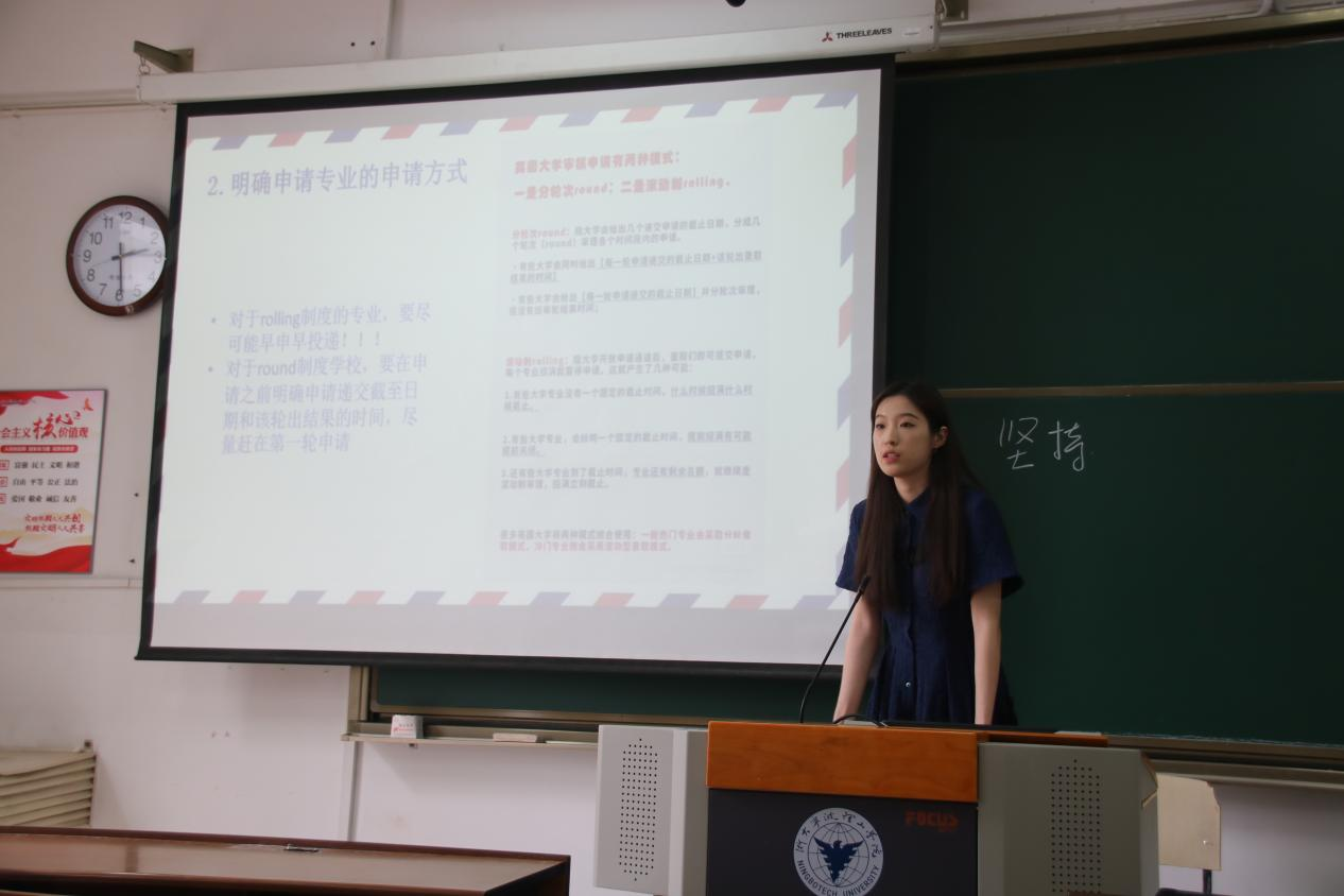 李军在分享会伊始,以幽默风趣的语言引发大家对考研意义的深思,用自己身边的例子告诉同学们要根据自身的情况选择是否考研,什么样的选择适合自己。魏梦洋用自己的考研经历告诉大家只要坚持,无论早晚,定能取得成功,并告诫同学们不可以三天打渔,两天晒网。