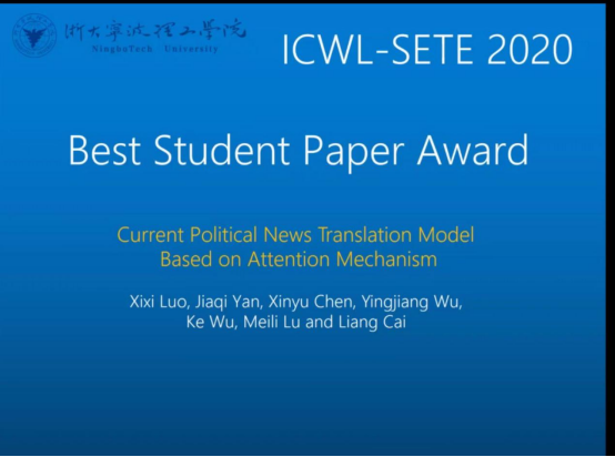 由蔡亮教授指导的员工论文获第19届基于互联网在线学习技术国际会议和第5届新兴教育技术国际研讨会最佳员工论文奖,公司员工论文首次在国际学术会议上获得奖项