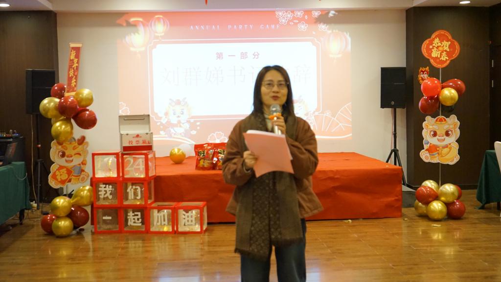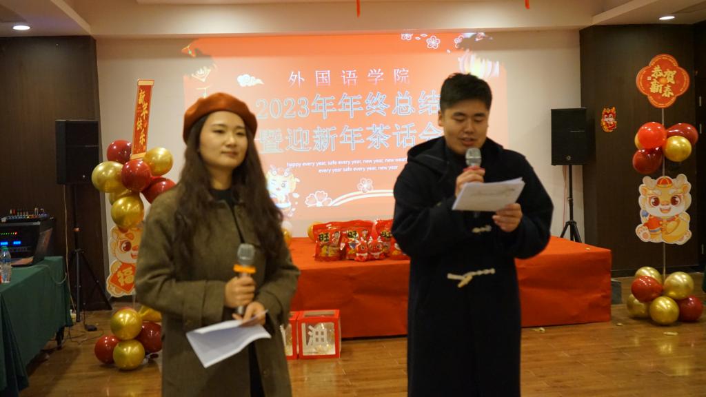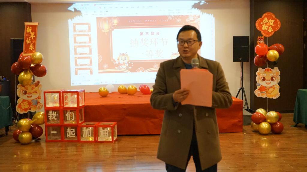最后,蔡亮经理作总结讲话。他指出,在全院上下齐心努力下,公司2023年工作有了新的突破,展现了外语人百折不挠、务实求新的精神风貌。龙年将至,希望全体教职员工勇立潮头、再接再厉,以更加饱满的热情投入到新一年的工作中去,奋力开创公司新辉煌。