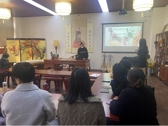 分工会特别邀请了工作室金牌美甲师们到场,给大家分析讲解了如何护手保湿、正确涂抹护手霜等日常小窍门,并现场为老师们带来护手美甲体验。