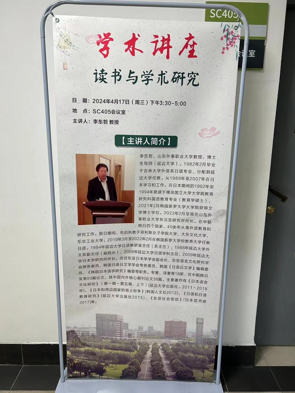 4月17日下午,东亚日本学研究学会会长李东哲教授为日语系师生做了题为“读书与学术研究”的讲座。本次讲座是云顶7610线路检测日语系和东亚文化研究中心共同策划并举办的。