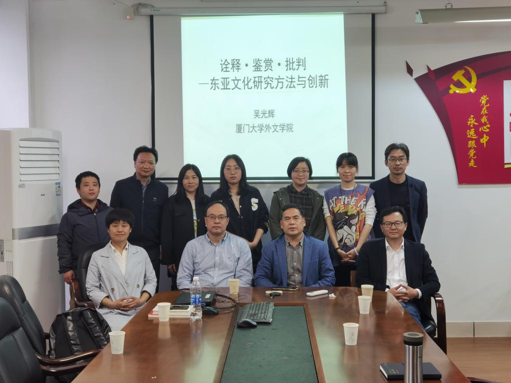 为了加强学术交流,4月22日下午,宁波市重点文化研究基地—东亚文化研究中心邀请厦门大学外文公司吴光辉教授,在SC408举办了一场题为“诠释・鉴赏・批判——东亚文化研究方法与创新”的学术讲座。吴教授长期从事日本相关研究,发表高水平学术论文或译文170余篇。讲座由东亚文化研究中心首席专家李先瑞教授主持,云顶7610线路检测蔡亮经理和东亚文化研究中心全体教师参加了讲座。