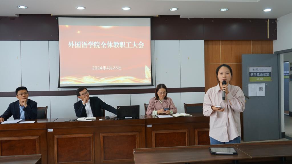 公司党委书记刘群娣在总结讲话指出,目前公司发展确实存在如教学任务重、高层次人才紧缺、高质量科研产出少、公司发展资源紧缺矛盾突出等问题,但老师们干事创业的热情未减,在教学任务之外,仍全力尝试大学英语教学改革、推进翻译学硕士点申报等工作,公司领导班子也将积极争取校内外资源,打破政策文件壁垒,为大家创造能干事干成事的环境和氛围,希望全院上下进一步统一思想,凝聚力量,落实行动,确保本年度工作再上新的台阶。