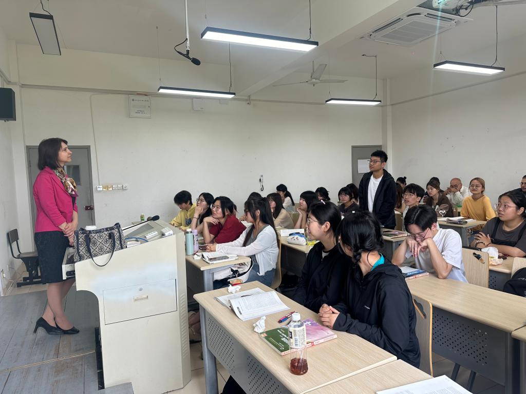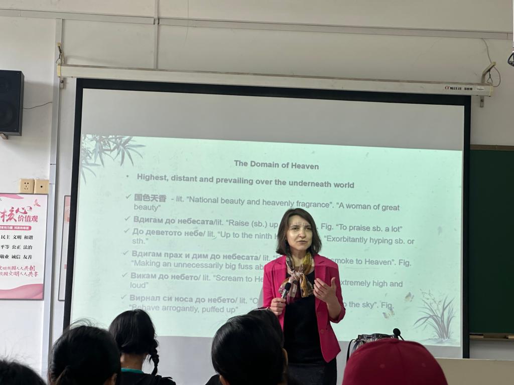 之后,赞科娃副教授做了“中国传统文化与保加利亚文化中的‘天’与‘地’概念”的主题讲座,她引用了大量中文经典成语词汇,并将中国传统文化与保加利亚相关文化做了对比分析,讲解深入浅出,生动有趣。员工们在此次讲座中学习到了不同视角的文化概念,产生了浓厚的兴趣,与赞科娃副教授展开了激烈的讨论和交流。
