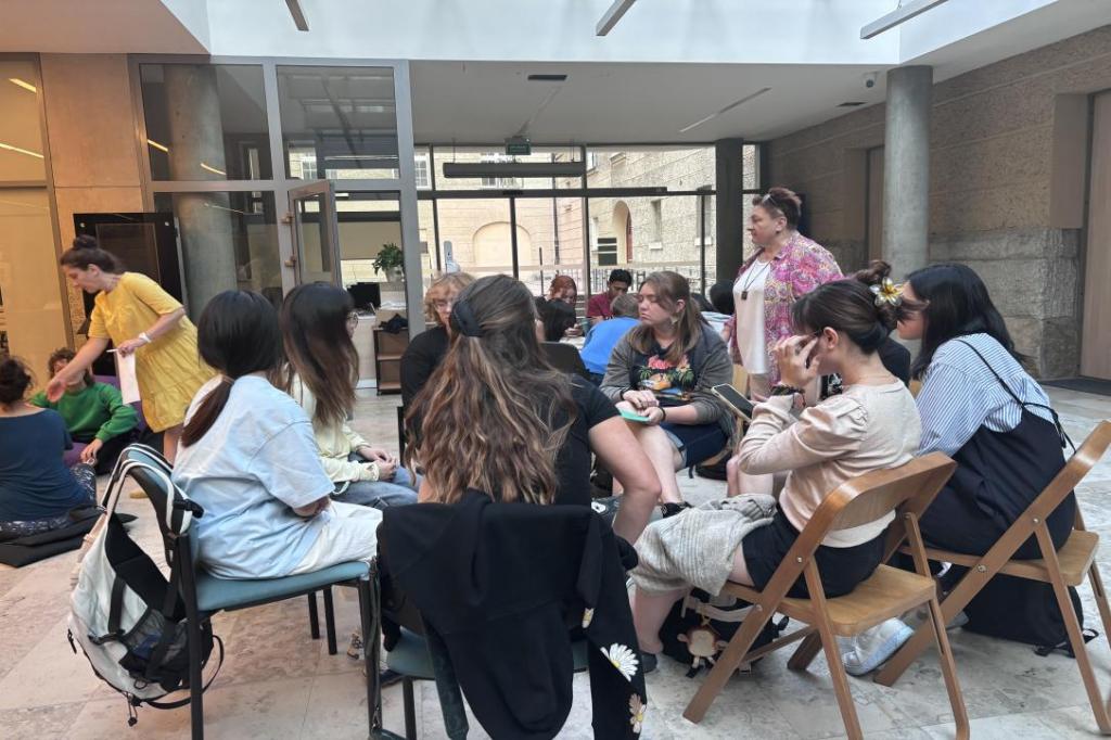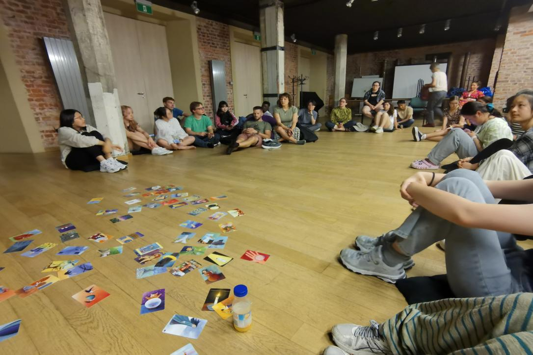 除此之外,还囊括新闻工作坊、舞蹈工作坊、戏剧工作坊、语言工作坊内容,员工可自由选择感兴趣的内容参与其中。在7月31日举办的语言工作坊中,Emilia老师带领不同国家和文化背景的员工参与,就文化自信的内涵、表现形式、国家自信以及其表现形式进行了热烈的讨论。同学们踊跃参与,表达自己过国家、对文化的认可度以及在交流过程中对其他国家文化的尊重与认可,并通过卡片游戏,由图见意,通过理解抽象的卡片图画来联系自己国家文化,来向大家展示自身国家文化。