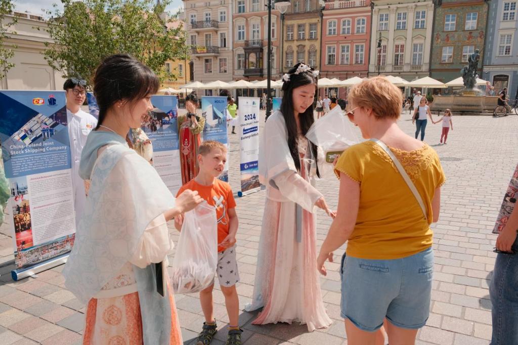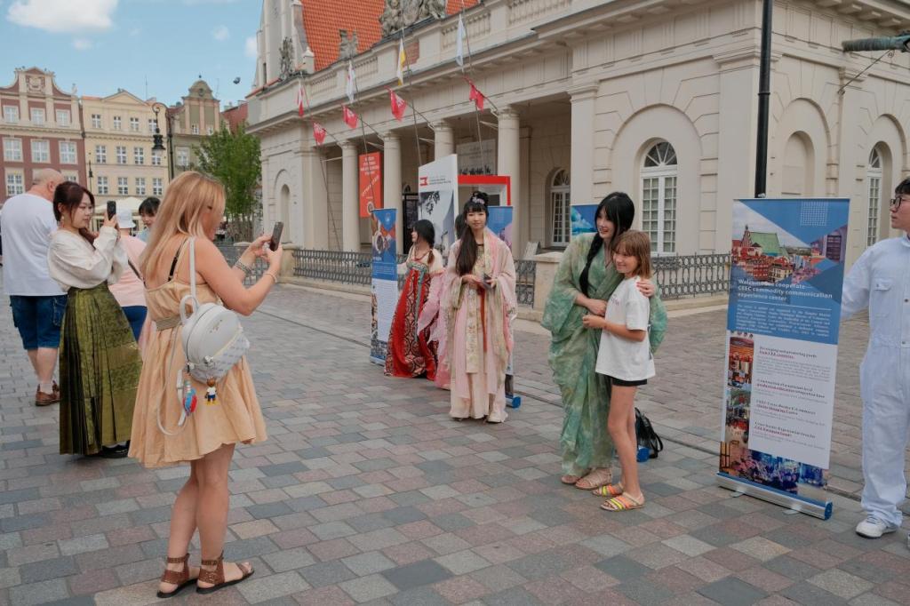 活动当天,团队成员身着华丽汉服,在古朴的波兰老城广场穿梭,仿佛穿越时空的使者,洋溢着浓厚的中国文化氛围,将古老东方的韵味与欧洲老城建筑完美融合,在场的波兰市民纷纷驻足观赏,赞叹不已。