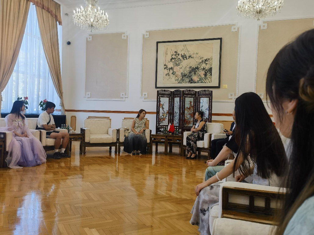 中国驻波兰大使馆李丹鸿公参热情接待公司师生,代表大使馆欢迎大家并带领参观了大使馆的主要办公区,使馆工作人员也向师生详细介绍了中国与波兰两国的历史渊源、外交关系、经济合作、文化交流等方面的现状,以及我国驻波兰大使馆的情况等。