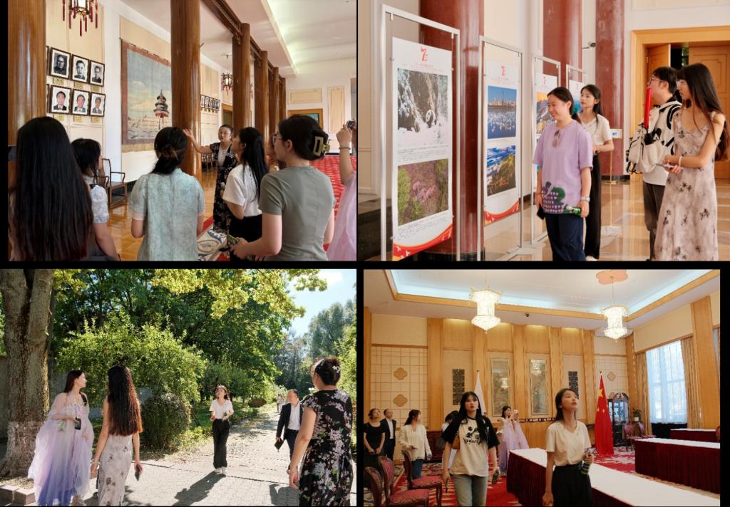 中国驻波兰大使馆坐落在华沙老城的黄金地段,是一座近乎正方形的独立院落。2015年,中国驻波兰大使馆因其“使馆花园建设、景点布局独具特色,装饰和雕塑匠心独运”,被波兰媒体评为“外国使团驻华沙十大明星建筑”之一。大使馆的主楼建筑为典型中国古典园林风格,庄重大气,庭院布局典雅有致。我大使馆内的灯笼、国画、屏风、瓷器等馆内的鲜明中国特征文化元素,使身处异乡的宁理学子倍感亲切。