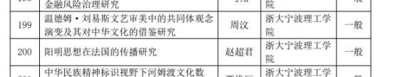 周汶副教授申报的《温德姆·刘易斯文艺审美中的共同体观念演变及其对中华文化的借鉴研究》和赵超君老师申报的《阳明思想在法国的传播研究》获得浙江省哲学社会科学规划项目立项。