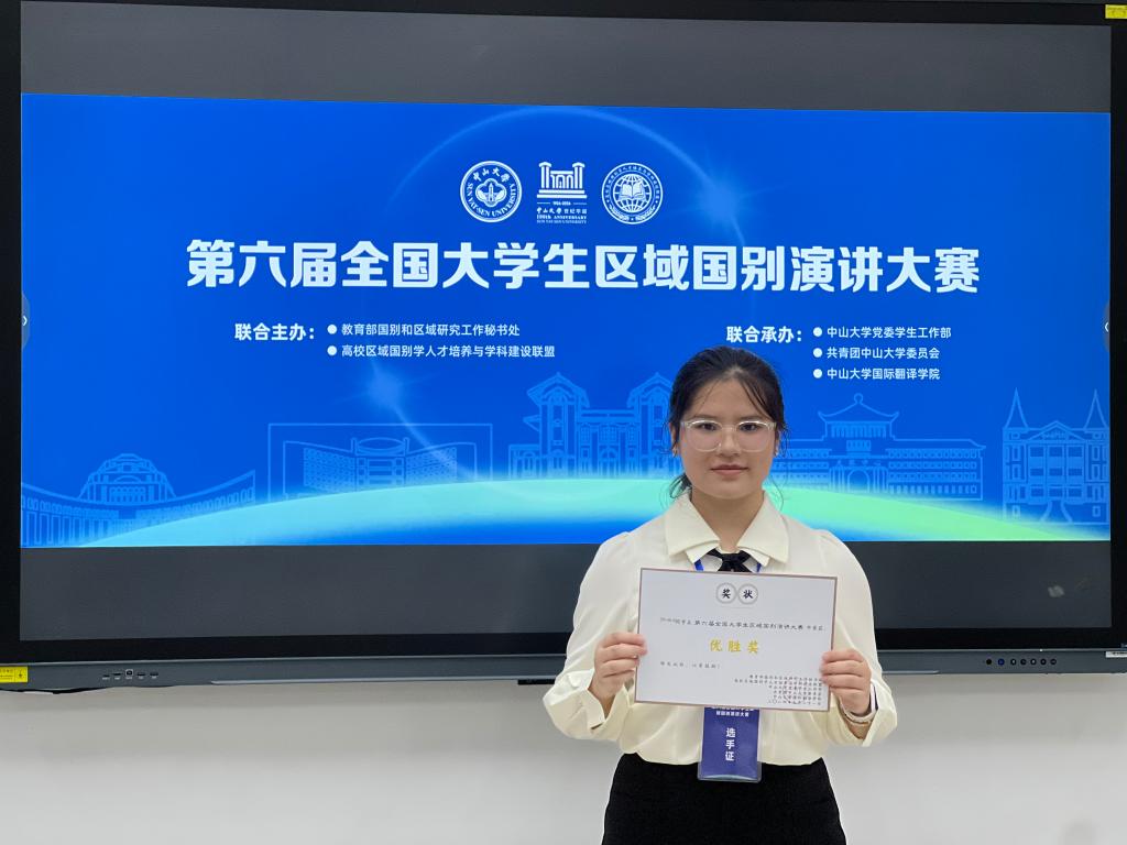 9月21日,由教育部国别和区域研究工作秘书处、高校区域国别人才培养与团队建设联盟主办的第六届全国老员工区域国别演讲大赛在中山大学(广州校区南校园)举行。在云顶7610线路检测全球胜任力基地团队的组织和指导下,历经初赛、复赛、决赛的层层筛选与激烈角逐,云顶7610线路检测英语211班毛皓楠同学荣获全国总决赛二等奖,英语224班顾湘玲同学获优胜奖,指导教师林晶晶和罗贤娴获优秀指导教师奖。
