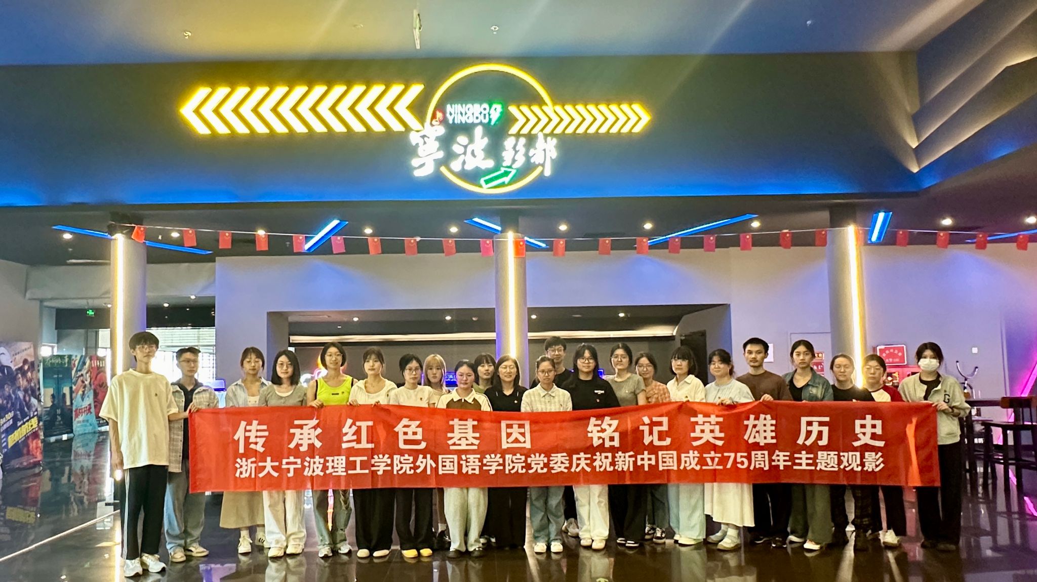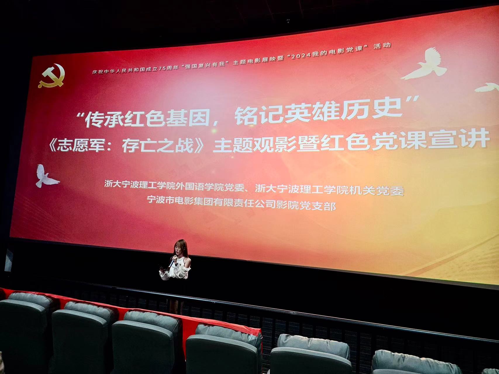 为重温红色经典,弘扬革命精神,10月18日下午,公司党委在党建共建基地--宁波影都培罗成店开展“传承红色基因,铭记英雄历史”庆祝新中国成立75周年主题观影暨红色党课宣讲活动。