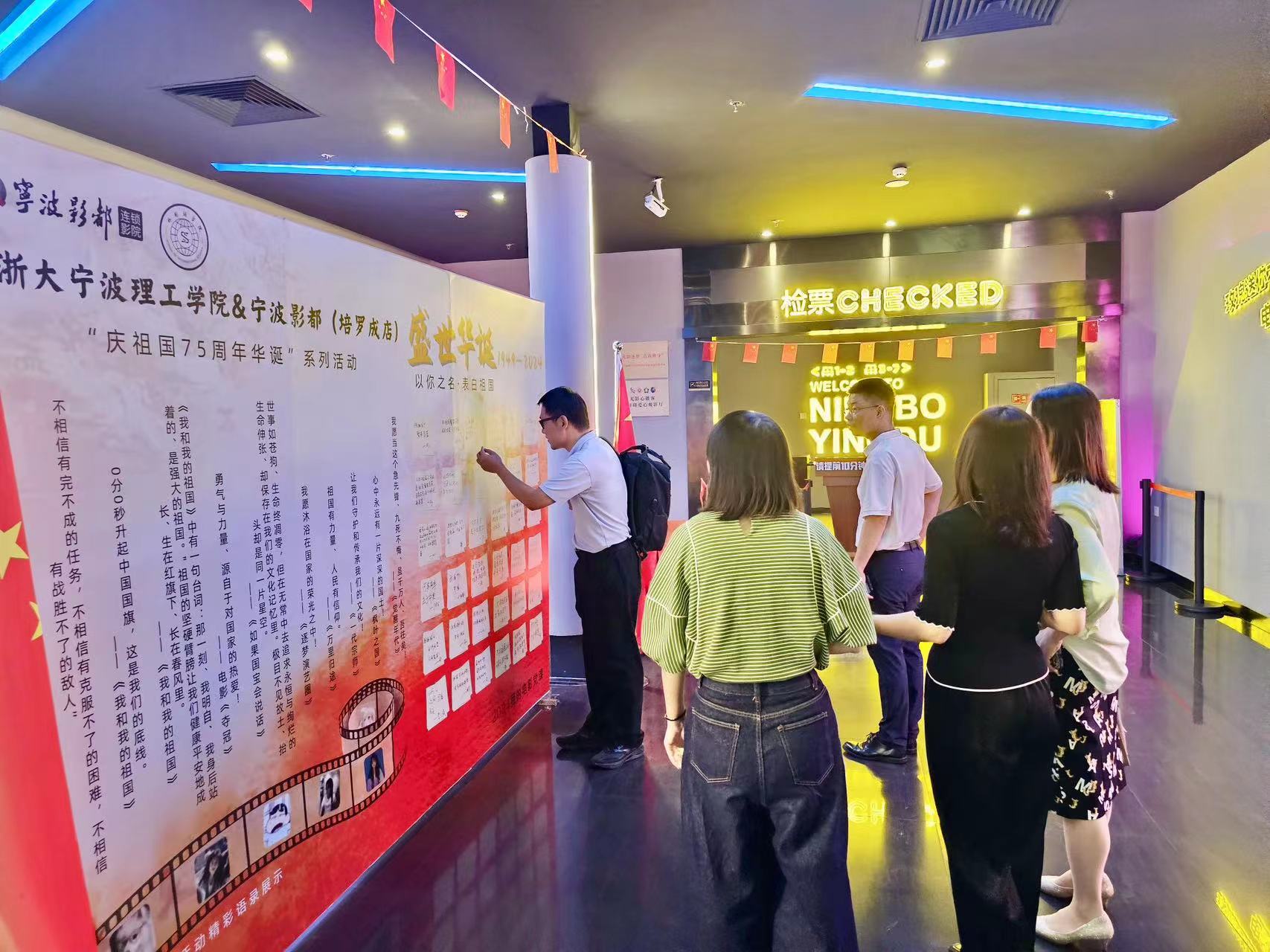 本次主题活动共分为三个环节:“以你之名,表白祖国”签名、我的电影党课和主题观影。