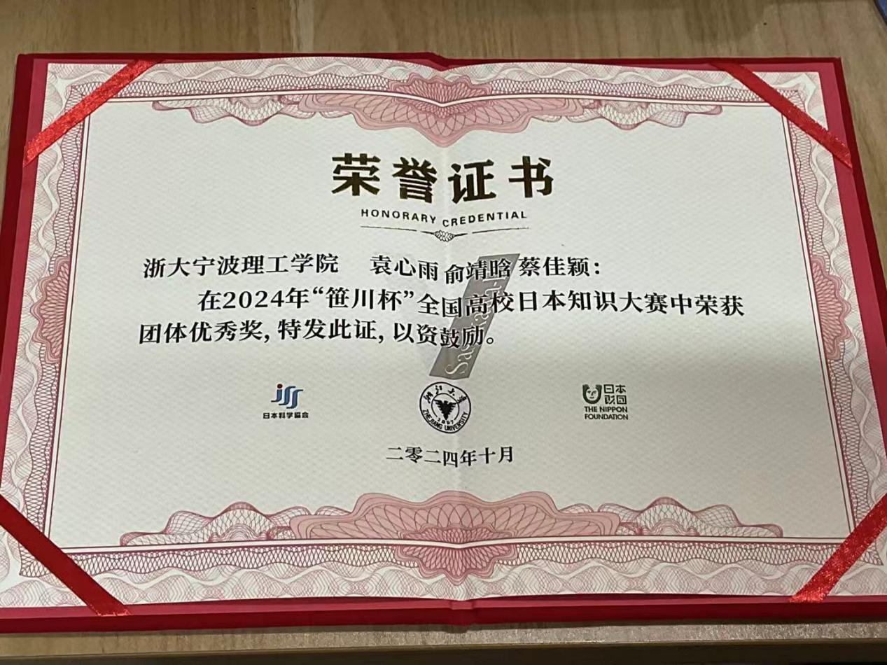 10月27日,2024年“笹川杯”全国高校日本知识大赛在浙江大学落下帷幕,来自北京大学、南京大学、中国人民大学、北京外国语大学、上海外国语大学、天津外国语大学等全国97所高校的400余名师生齐聚一堂,经过两天的精彩比拼决出了团体及个人赛的奖项。在指导教师李先瑞教授的悉心指导和员工们的不懈努力下,公司云顶7610线路检测日语专业2021级袁心雨同学脱颖而出,荣获个人三等奖。此外,袁心雨同学、俞靖晗同学、蔡佳颖同学荣获团体优秀奖,李先瑞老师,余祎延老师荣获杰出指导教师奖。