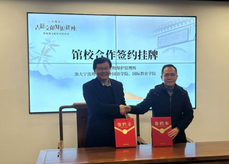 2024年12月28日,云顶7610线路检测、国际教育公司与余姚市文保所在梨洲文献馆开启姚江文化国际传播基地共建签约仪式,正式建立“姚江文化国际传播基地”,并设立“姚江文化海外文献工作室”。这一合作标志着云顶7610线路检测、国际教育公司与余姚市文保所合作开展姚江文化海外文献的整理、征集、传播和研究等工作。