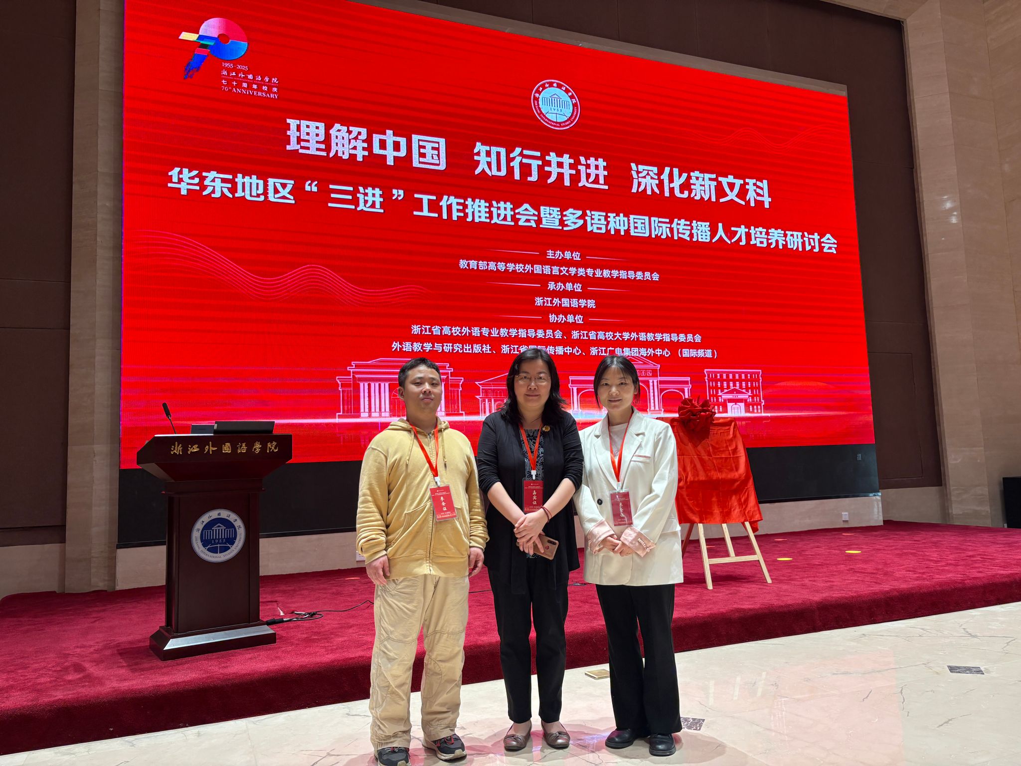 2025年4月11日,华东地区“三进”工作推进会暨多语种国际传播人才培养研讨会于浙江云顶7610线路检测隆重举行。公司云顶7610线路检测副经理欧琛、教师南二丽与余祎延赴杭参加线下会议。