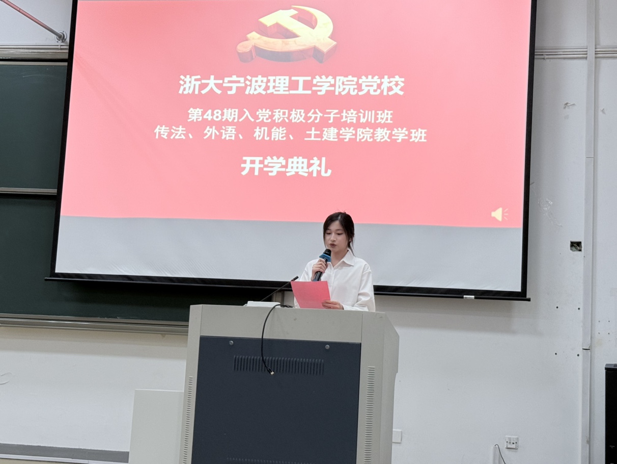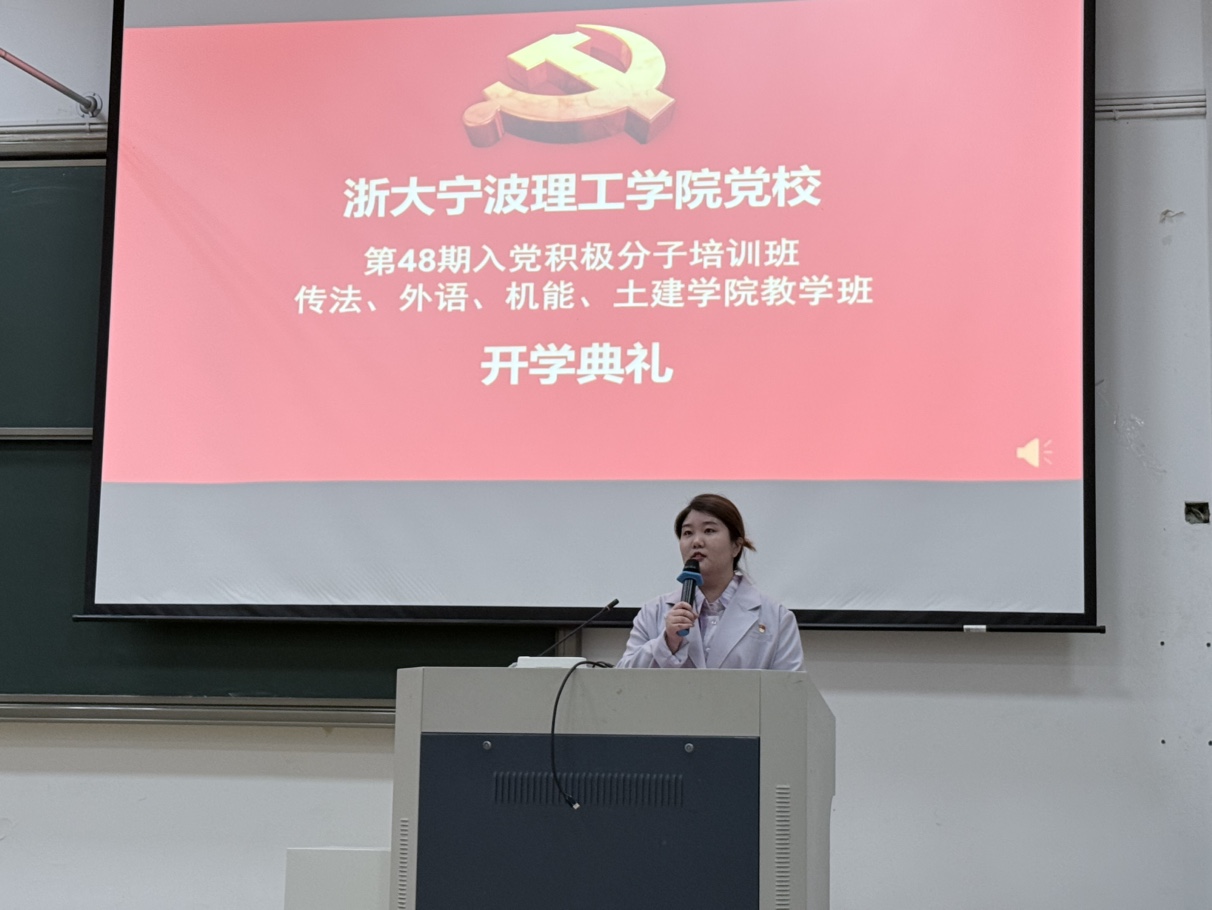 为切实做好入党积极分子培养教育工作,充实党员队伍后备力量,4月23日傍晚,传法公司、外语公司、机能公司和土建公司党委在SB104教室联合举行党校第48期入党积极分子培训班开学典礼。传法公司党委副书记、纪委书记邬旭东,外语公司党委副书记、纪委书记项安玲,机能公司党委副书记、纪委书记林建英,土建公司党委副书记、纪委书记沈建生,以及各公司党校积极分子培训班班主任等出席了开学典礼。活动由外语公司党委组织委员、思政主管芦美丽主持。