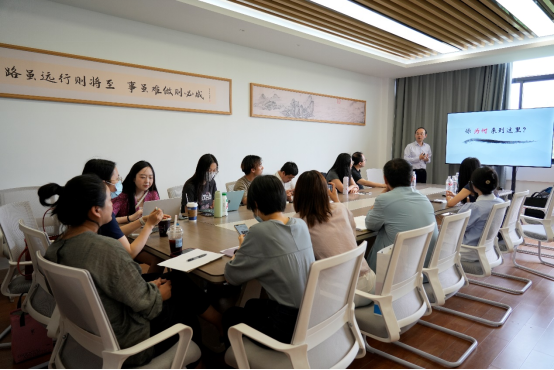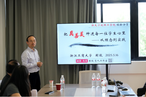 主讲人浙江工商大学封毅副教授以《把真善美种进每一位员工心里》为题,带来一场教育思维德盛宴。作为浙江省“我最喜爱的高校思政课老师”、五一劳动奖章等多项奖项的获得者,封毅教授以“求真知、明真理、做真人”为起点,系统阐释教育之“真”的三重维度;在“善”的教育维度,他提出“持良德、存大爱、创善举”的实践理念,通过“课前暖心问候机制”、“课后个性化反馈系统” 等案例,为在场教师展现了富有启发性的育人模式。谈及“美”的教育构建,封毅教授突破传统艺术审美的框架,以自然、社会、人文等跨学科教学案例为例,引导员工从多元视角感知美、创造美。此外,其独创的《封言封语》系列育人格言,更以诗意语言传递价值理念,成为师生广泛传播的文化育人载体。