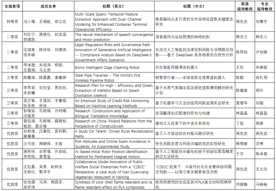 (以上参赛同学和指导老师将获得由学术英语教学研究会和全国赛组委会办法的获奖证书。)